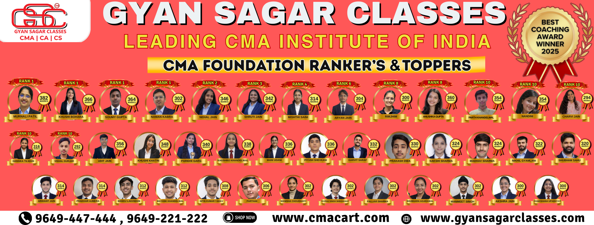 Want to crack CMA on your first attempt? Challenging but possible with the guidance of the best CMA Foundation Coaching in Rajasthan, Gyan Sagar Classes! If you’re looking to get the best grade possible, you’ve come to the right place. Our classes are designed specifically for students who want to get a top rank.